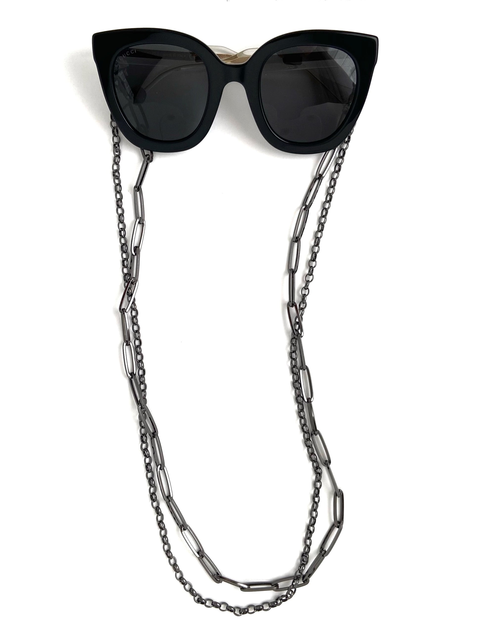 Corrente de Óculos Metal Grafite Dupla - Grande
